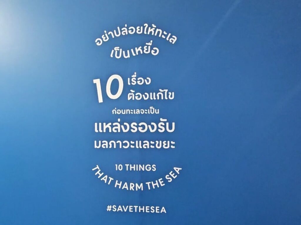 ตลอดเวลาที่ผ่านมาการกระทำของมนุษย์ได้เข้าไปทำลายทะเลทั้งการสร้างมลพิษ ก๊าซเรือนกระจก ทั้งยังปล่อยสารเคมีลงแหล่งน้ำที่ทำให้น้ำเป็นพิษที่สำคญคือการทิ้งขยะไม่เป็นที่ จึงได้มีการนำเสนอปัญหานี้ออกมาภายใต้ concept “Save the sea ฟื้นทะเล คืนบ้านน่าอยู่ให้โลก” ได้มีการพูดถึง 10 เรื่องที่ต้องแก้ไขกอ่นทะเลจะเป็นแหล่งรองรับมลภาวะและขยะเช่น เรื่องซากแหอวนไม่ใช้แล้วเศษอวนที่ถูกเกี่ยวขาดมักถูกทิ้งไว้คิดเป็นร้อยละ 10 ของขยะที่ถูกทิ้งลงทะเลเมื่อถูกกระแสน้ำพัดไปรวมกันจนเกิดแพขนดใหญ่ขึ้น เรื่องครีมกันแดดโดยสารเคมีในครีมกันแดดจะเข้าไปทำลายสุขภาพของปะการัง ทำให้สีสันค่อน ๆ ซีดลงกลายเป็นปะการังที่ไม่มีสีในที่สุด และยังมีอีกหลายเรื่องที่เป็นปัญหาต่อทะเล